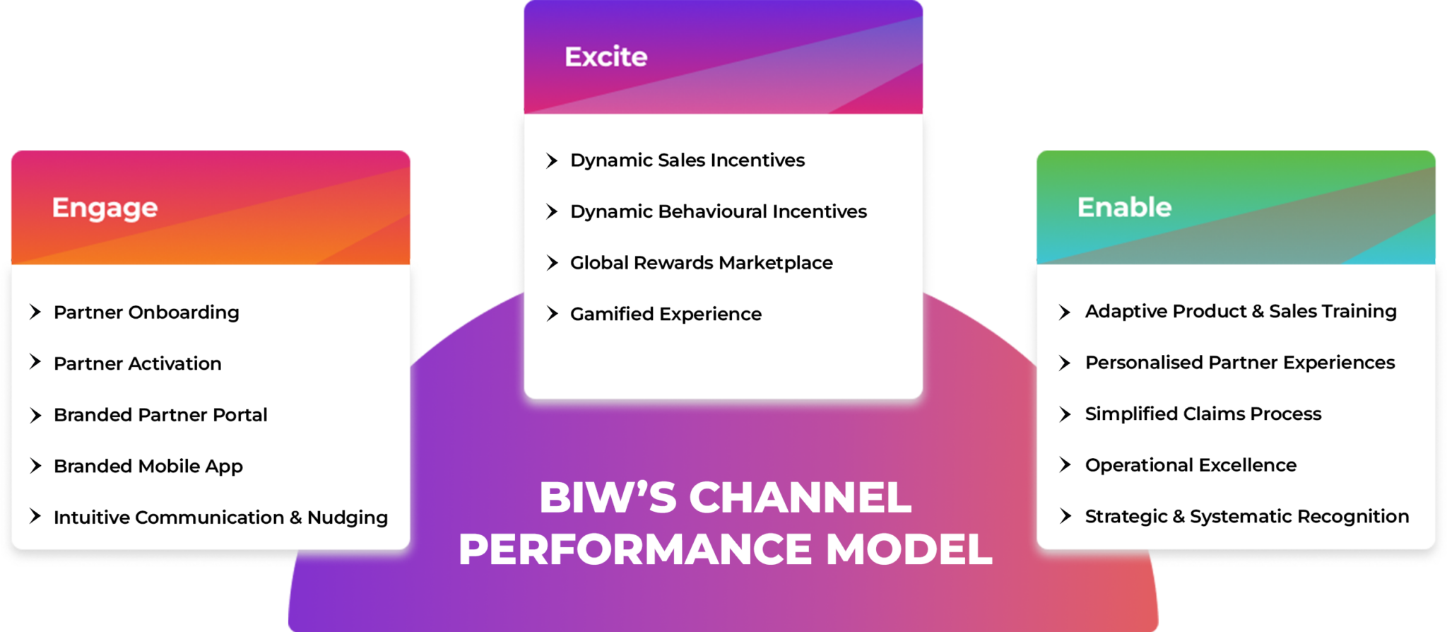 Our proven Channel Performance Model, rooted in inspiration and human-centric design, drives sustained engagement and excitement across your partners’ lifecycle.